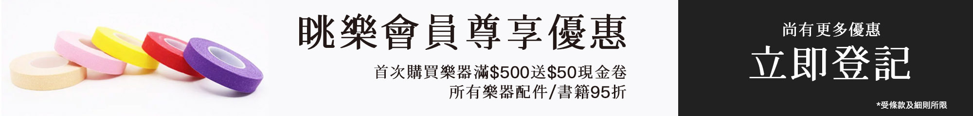 - 首次購買樂器滿$500,即可獲贈$50現金卷