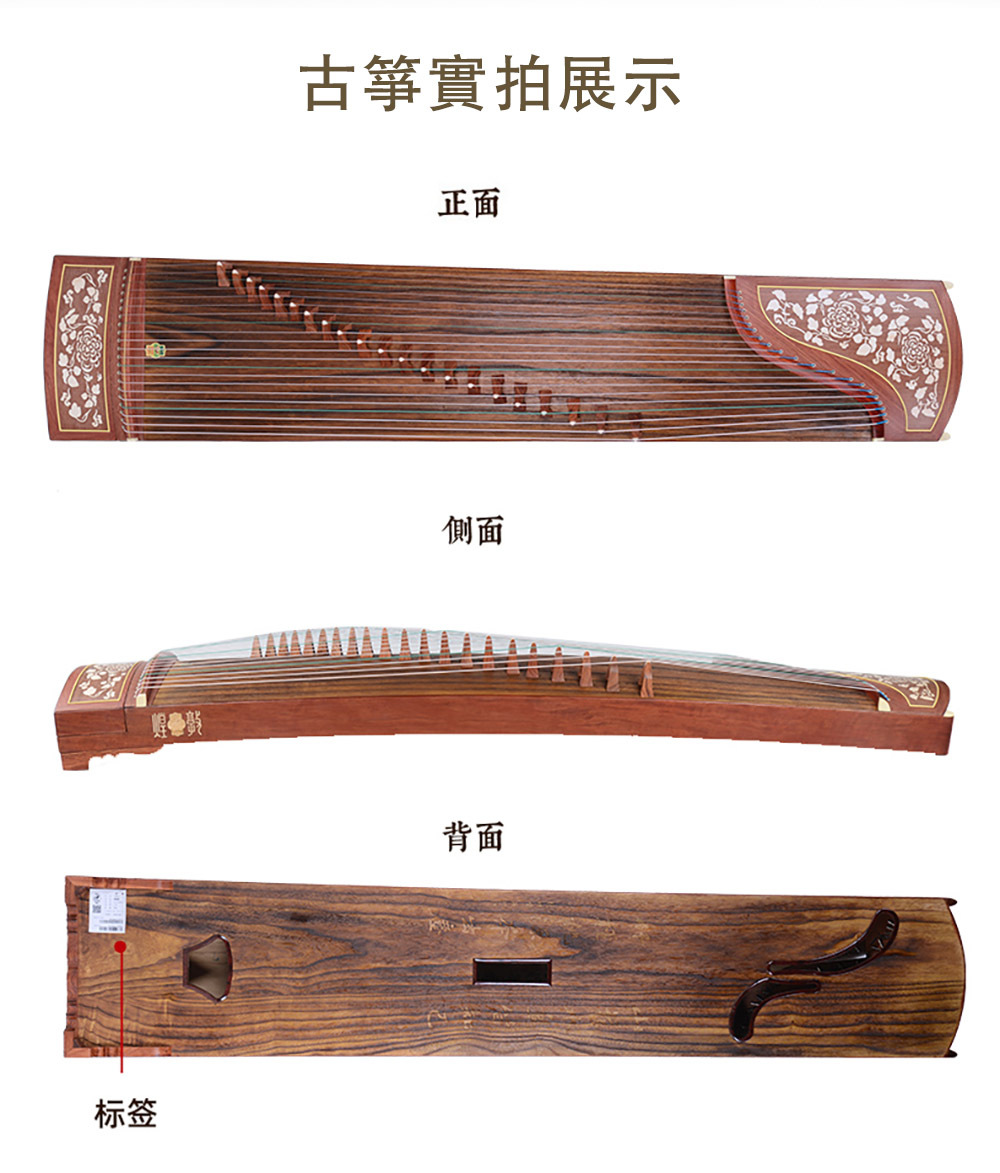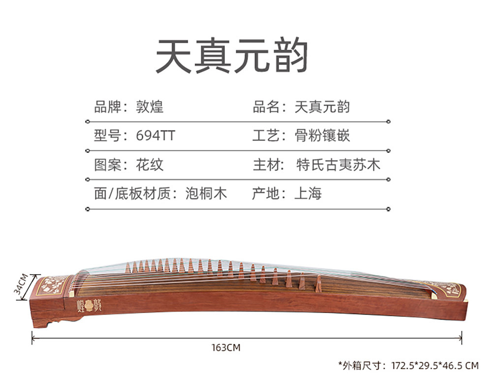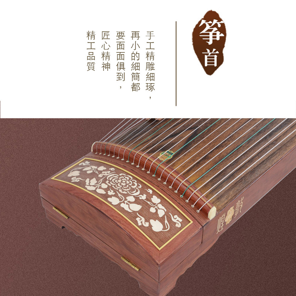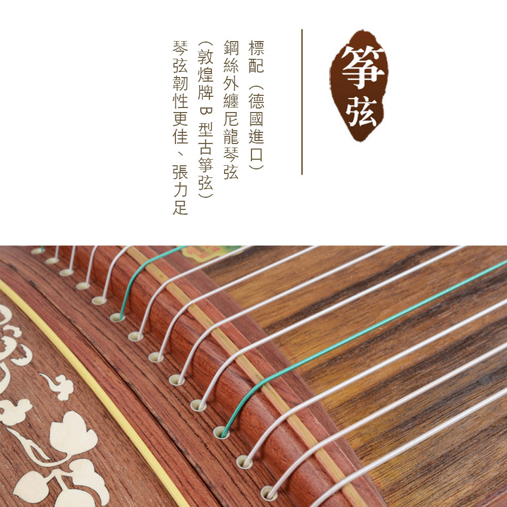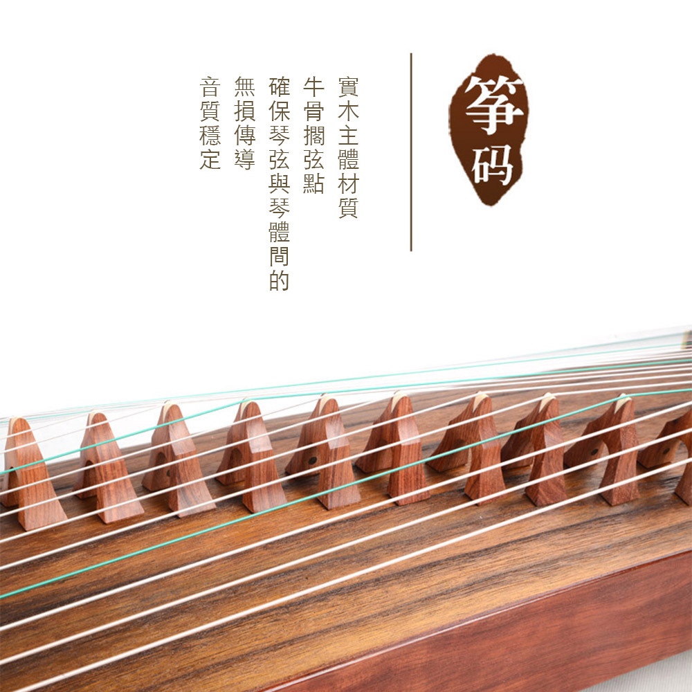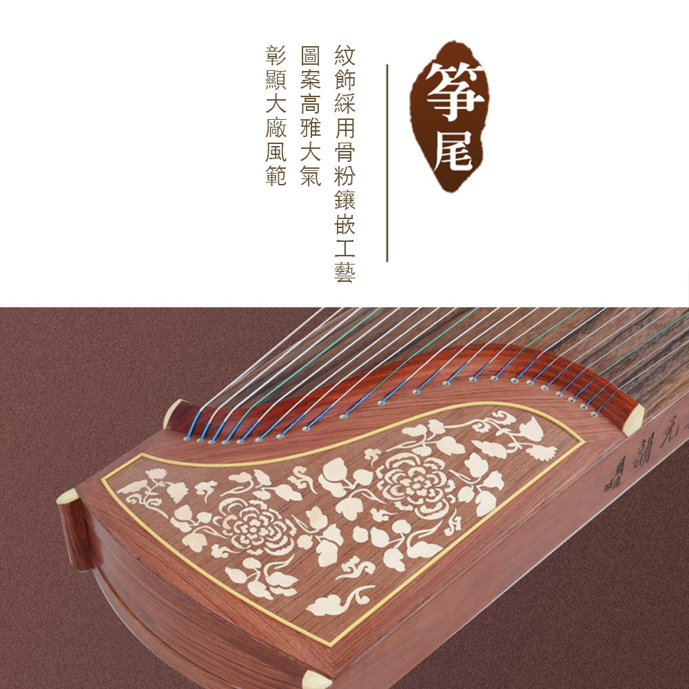 規格﹕ 163cm、21弦、特氏古夷蘇木、泡桐木(面板及底板)、實木(箏碼)